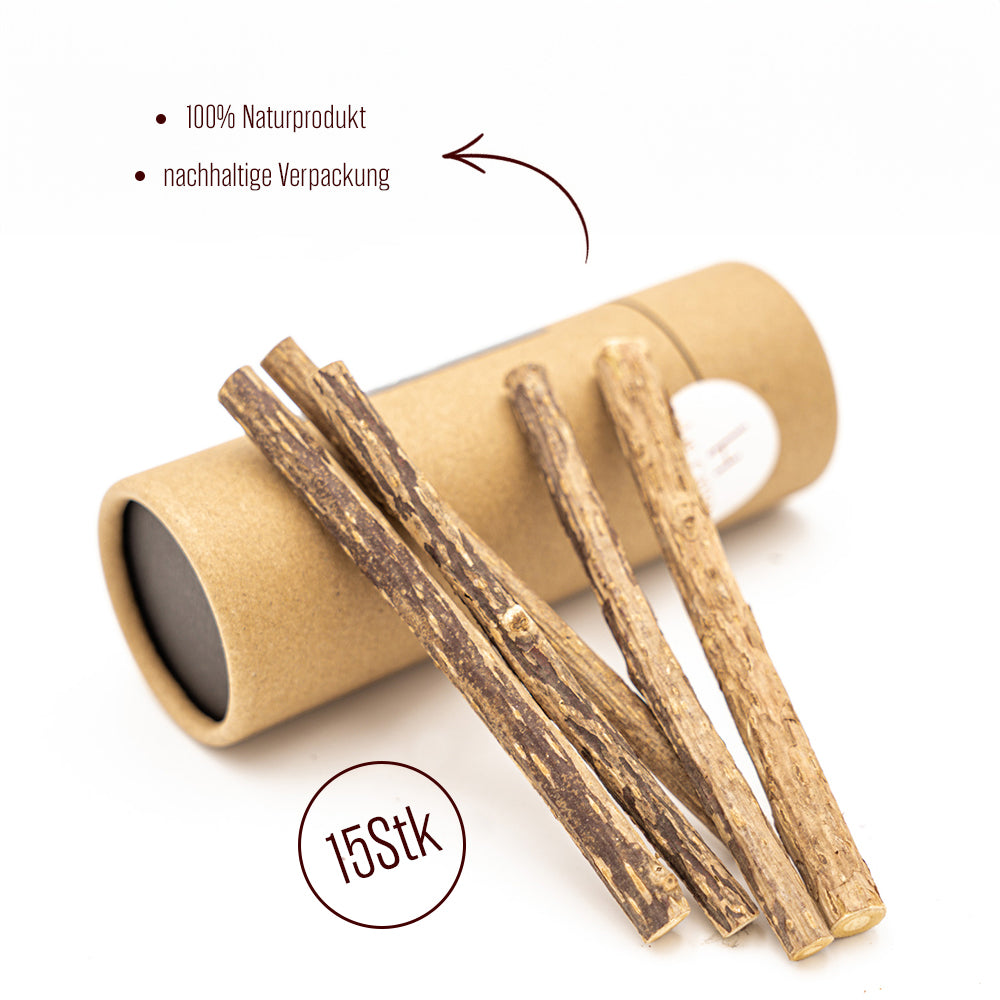 Die unbehandelten Enjoy Matatabi Sticks sind ein spielerischer Snack für zwischendurch. Die Matatabi Sticks sind getrocknete Zweige der Matatabi Pflanze, welche ihren Ursprung in Japan finden. Sie werden auch als japanische Katzenminze bezeichnet. Der Duft kann, wie Katzenminze oder Baldrian, eine euphorische Wirkung bei Katzen erzielen. Durch das Kauen des Holzes kann außerdem der Mundgeruch sowie Zahnstein reduziert werden. Die Holzsticks sind also eine natürliche Zahnpflege für Katzen!